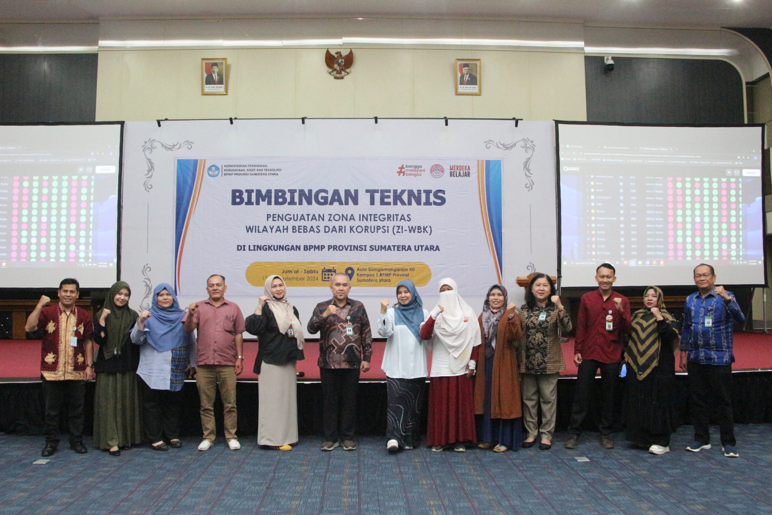 Medan, 14/9 – Kegiatan Bimbingan Teknis (Bimtek) Penguatan Zona Integritas Wilayah Bebas dari Korupsi (ZI-WBK) di BPMP Provinsi Sumatera Utara resmi dimulai pada hari Jumat, 13 September 2024. Bertempat di Aula Sisimangaraja XII Kampus I BPMP Provinsi Sumatera Utara, acara ini akan berlangsung hingga Sabtu, 14 September 2024, dihadiri oleh seluruh pegawai BPMP Provinsi Sumatera Utara serta sejumlah narasumber ahli dari Sekretariat Direktorat Jenderal Pendidikan Anak Usia Dini, Pendidikan Dasar, dan Pendidikan Menengah (Ditjen PAUD, Dikmas dan Dikmen).
