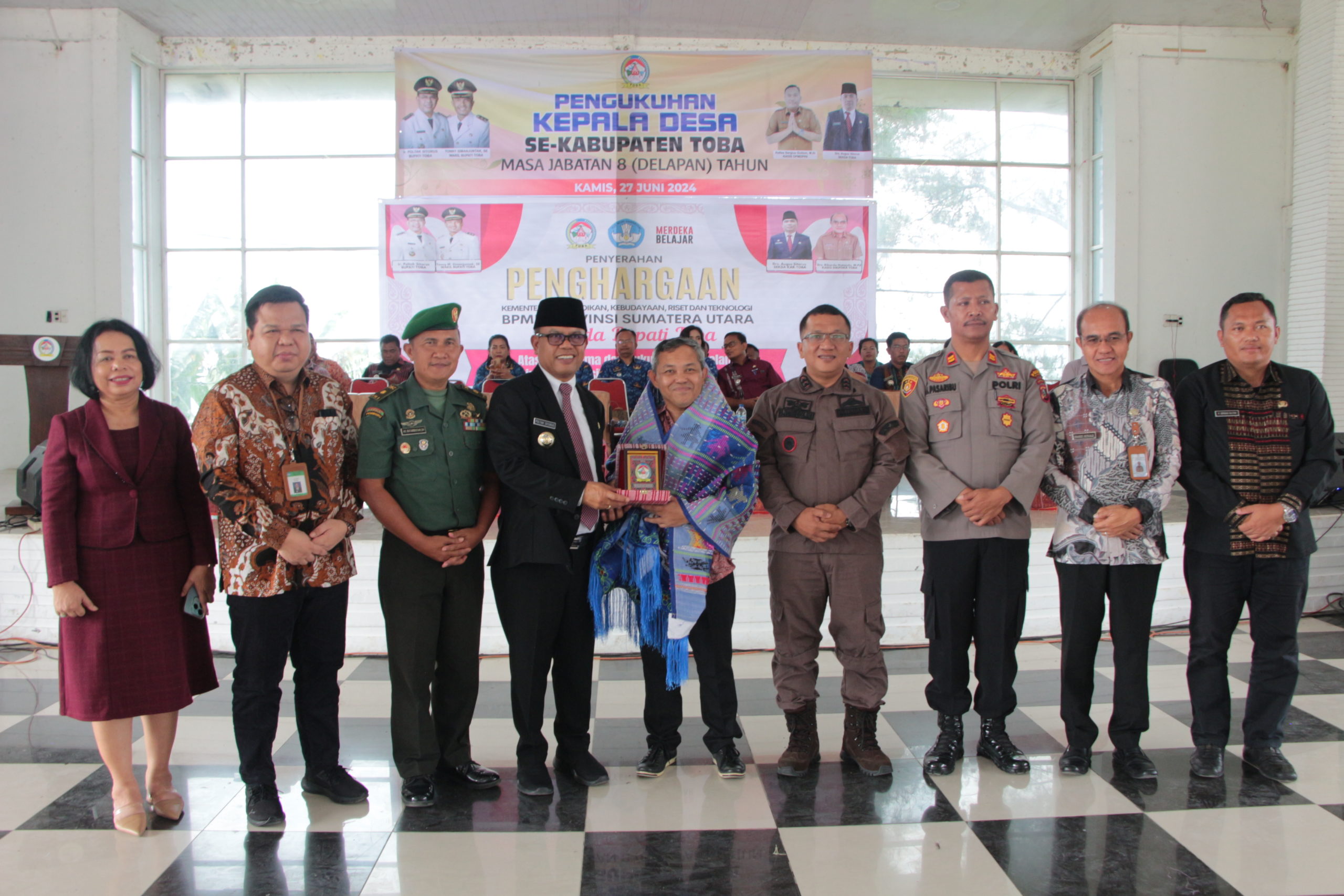 BPMP Provinsi Sumatera Utara memberikan apresiasi penghargaan kepada pemerintah Kabupaten Toba atas kerjasama dan dukungannya dalam mendorong implementasi kebijakan Merdeka belajar ( 27/06/2024), di Aula Pendopo rumah dinas bupati, Balige.