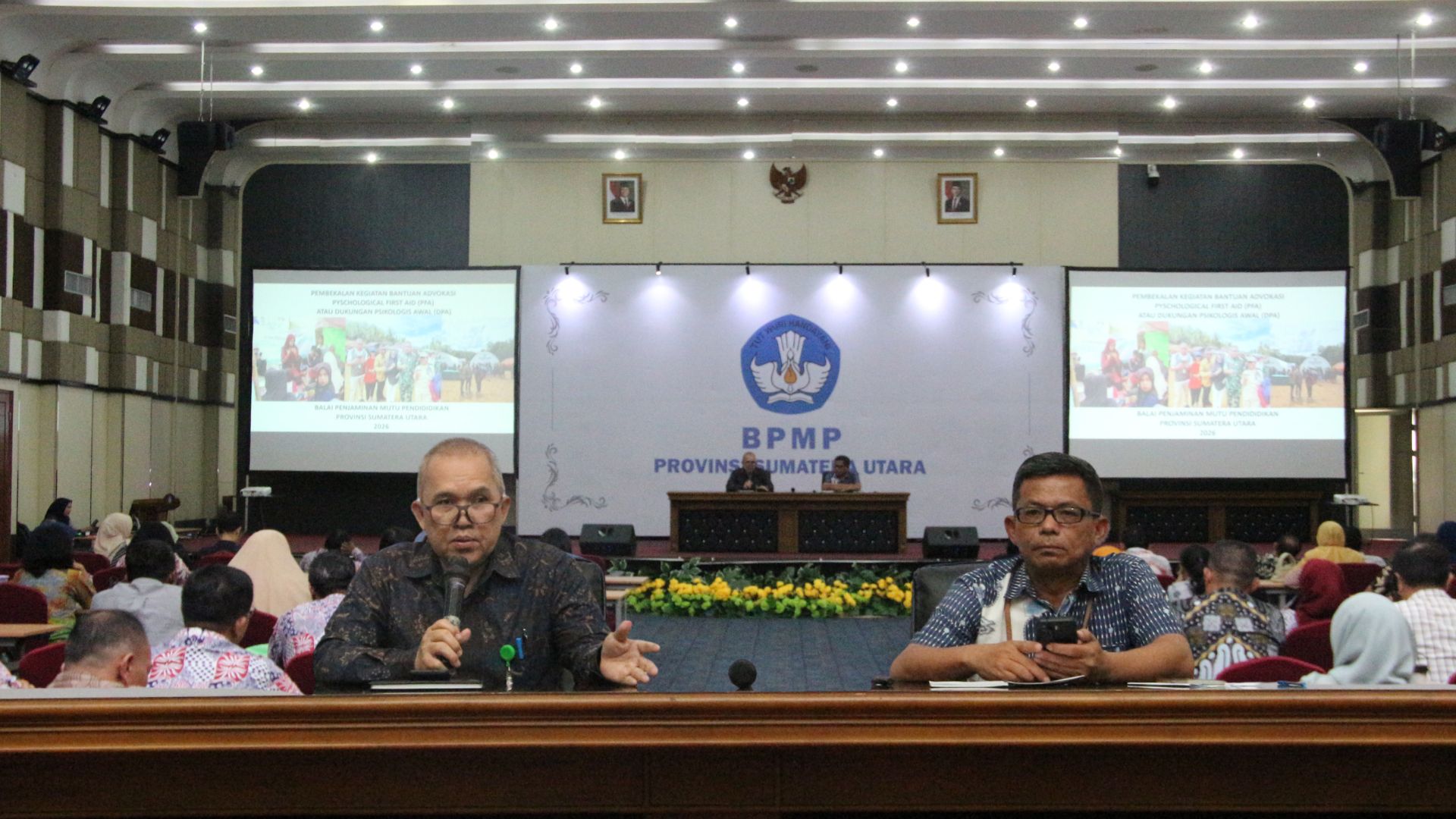 Medan, 22 Januari 2026 – Dalam rangka persiapan Kegiatan Bantuan Advokasi “Psychological First Aid” (PFA) dan “Dukungan Psikologis Awal” (DPA), BPMP Provinsi Sumatera Utara melaksanakan rapat pembekalan di Aula Sisingamangaraja BPMP Sumut yang dihadiri oleh seluruh pegawai ASN yang terdiri atas PNS dan PPK di lingkungan BPMP Provinsi Sumatera Utara. Kegiatan ini merupakan tahapan penting sebelum pelaksanaan PFA dan DPA yang dijadwalkan berlangsung pada tanggal 26 sampai dengan 29 Januari 2026.